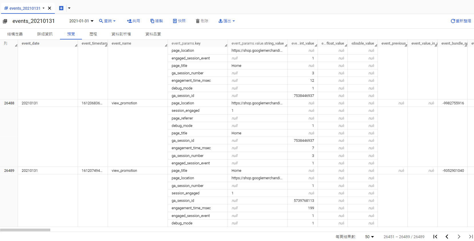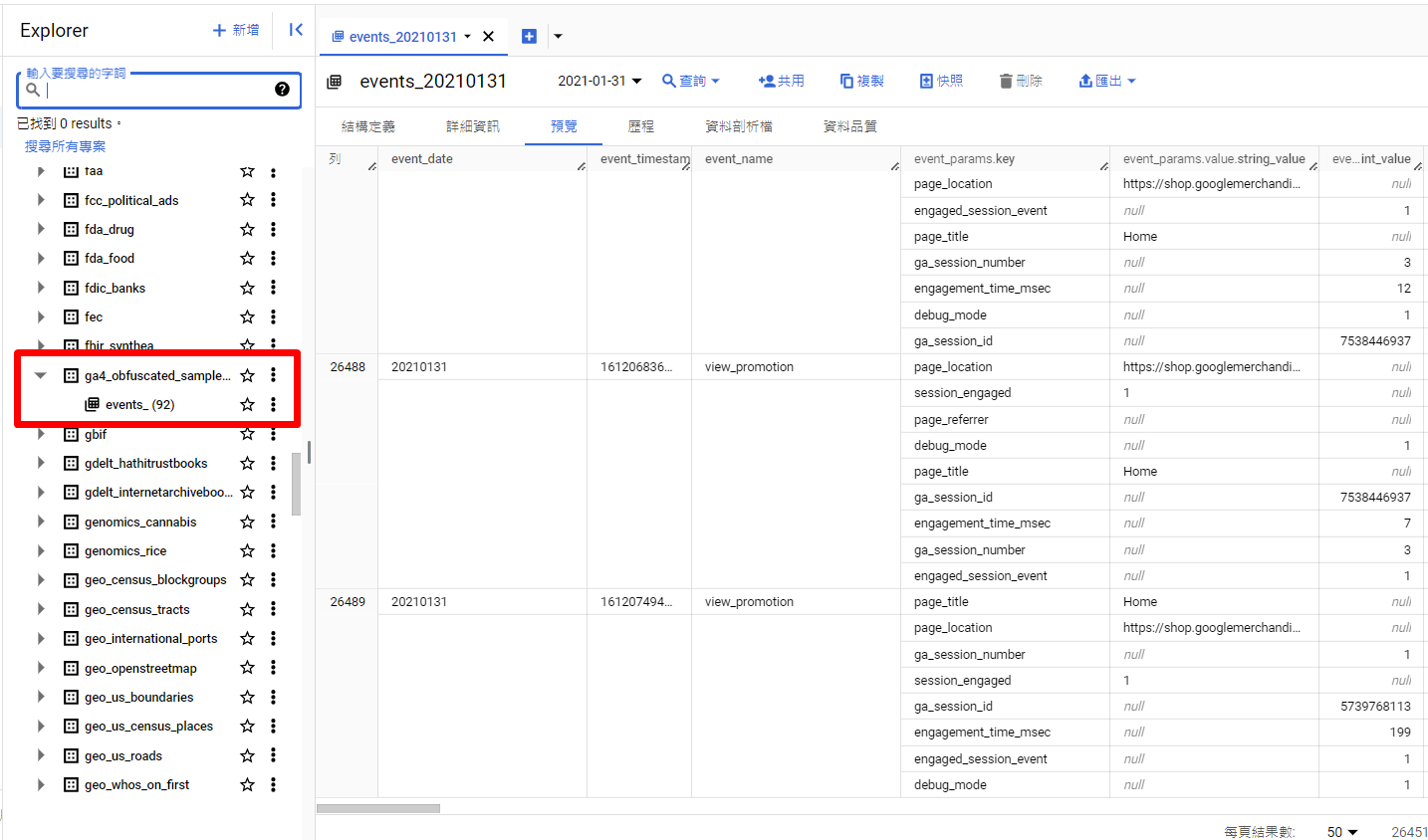 因為我使用的是範例資料,所以要先找到接下來要分析的GA4報表,並且打開這張表,看一下目前擁有的資料內容。