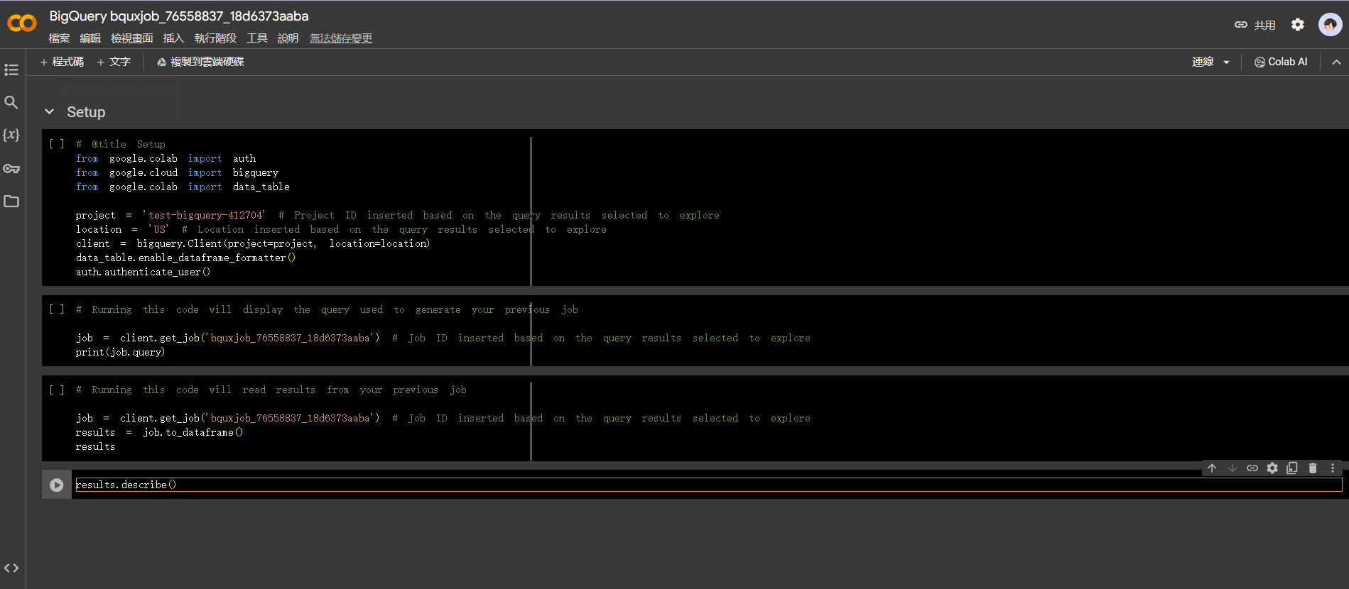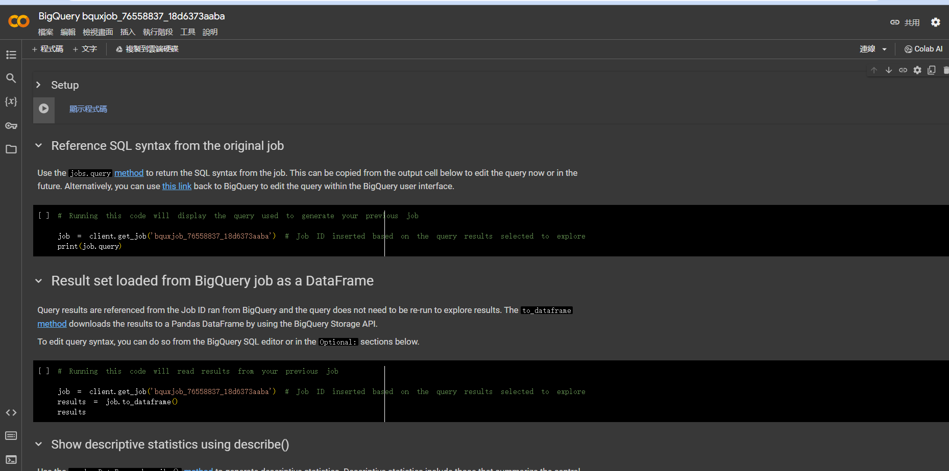 點到第三行,也會有看到來自BigQuery的資料DataFrame。不過這還不是我們要的結果。