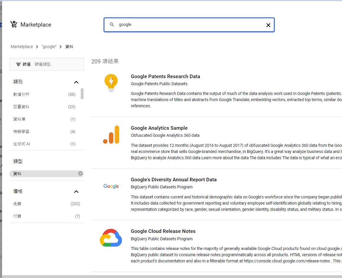 其他BigQuery相關說明