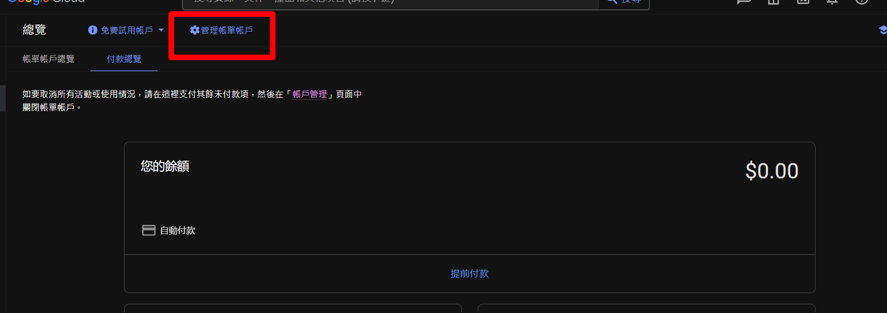 點這一個頁面可以看到你目前需要支付的金額,Google Cloud 將會於隔月收取。