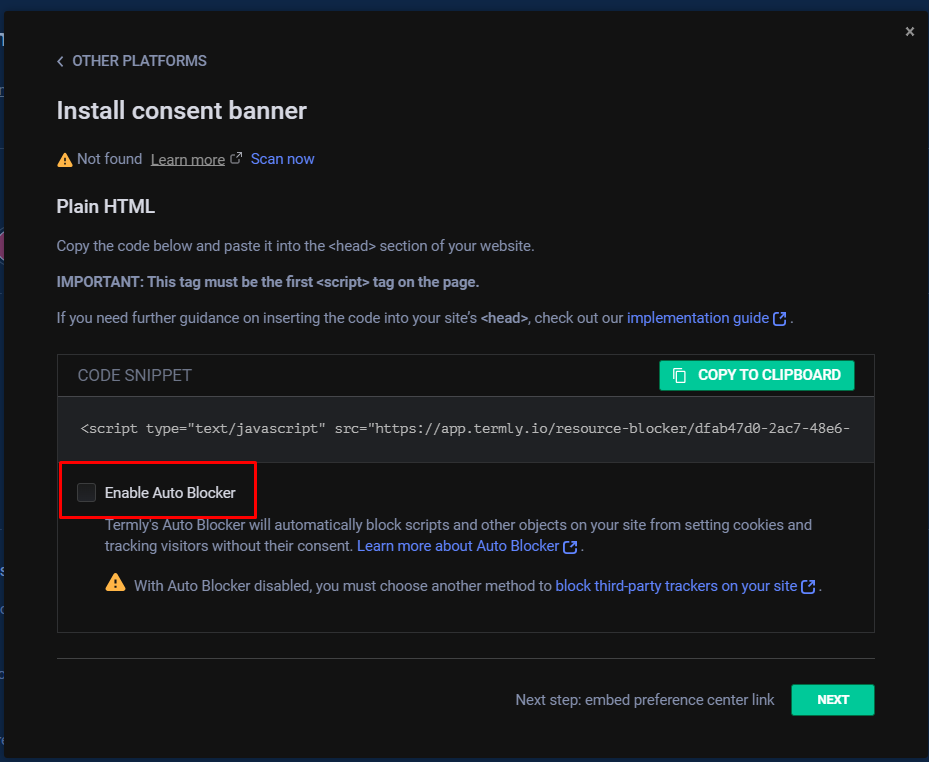 雖然Termly有提供直接對應GTM的範本,但我用起來比較不順。我個人比較 推薦用HTML埋設至GTM中 。如果你堅持要使用GTM也可以哦。