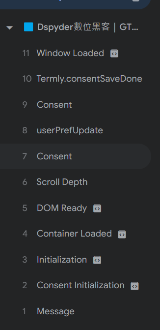 在GTM的除錯模式中,可以看到多了一些新的Consent 事件。