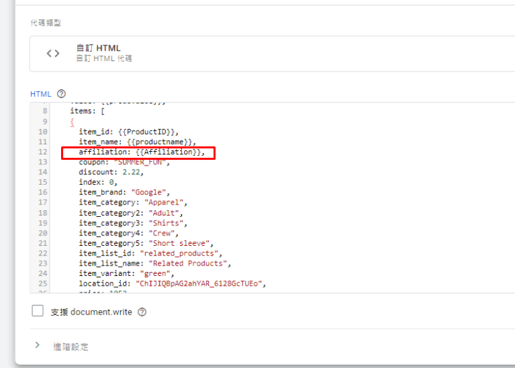 我們將會透過下一個變數,將kol變數放置自訂tml中。