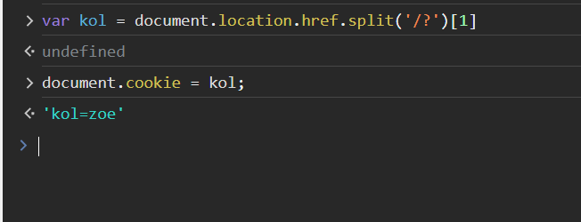 function() { var kol = document.location.href.split('/?')[1]; kol = kol.match(/kol=[a-zA-Z1-9.]+/)[0] document.cookie = kol; return kol; }