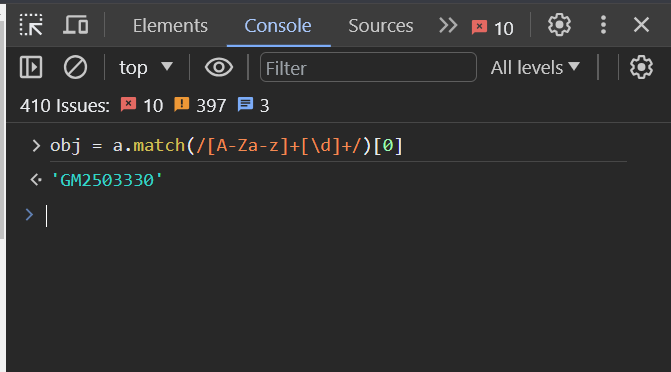 obj = a.match(/[A-Za-z]+[\d]+/)[0] 會變補上一個[0],因為目前還是一個陣列,不是字串格式。要注意的是,圖片範例與你的官網絕對不同,還是要依照網站程式碼,做上面的教學方式,照抄基本上行不通的。