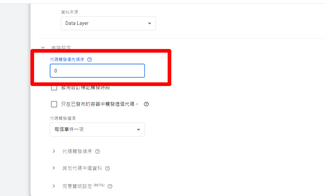 如果你有在網站中的GTM找到以上自訂HTML,而且在前台有看到pixel像素。那就表示他們像素不是寫在該GTM裡面。因此大多狀況都是這樣導致其他公司pixel追蹤失利,所以可以這個的觸發條件,把他往後延到window loaded。