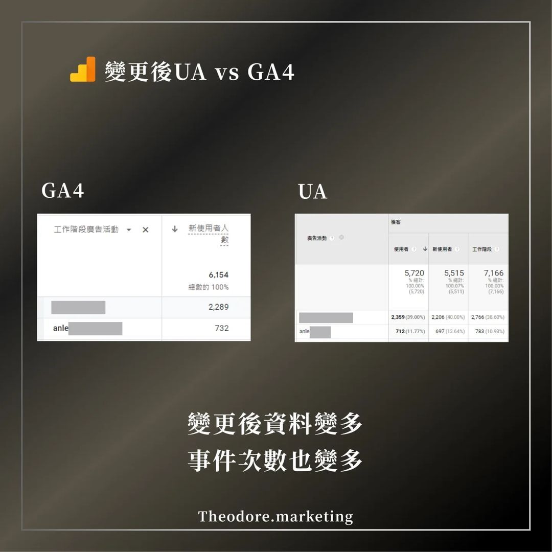 由於兩個就是不同的邏輯;也也可以直接認為,兩套不同的追蹤程式,即便都是叫Google Analytics。 而目前看到這篇UA也已經被淘汰了,所以就算想要回到UA的資料也沒用了。