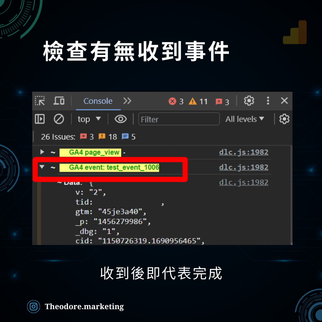 埋設完畢後,前往官網,可以透過「 確認網站前端有無傳送事件 」來進行查驗。也可以使用chrome插件,做檢查的動作。前台如果有確定收到事件,那就代表埋設完成!