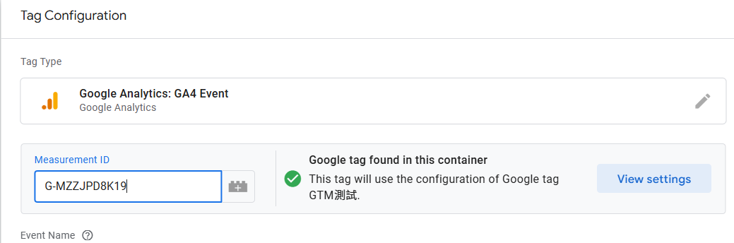 後續如果要設定GA4事件,則是一定要放入Measurement ID (評估ID),這樣也可以順利偵測。