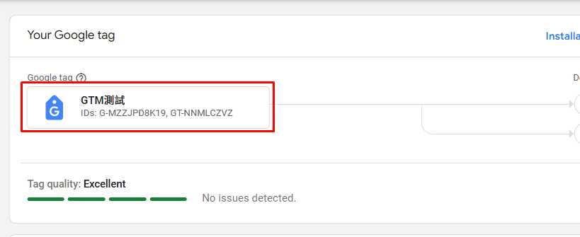 如上方圖所示。在GTM容器中,GTAG代碼,我放入GT開頭ID (GTAG ID),而不是一般的G-開頭ID (評估ID)。