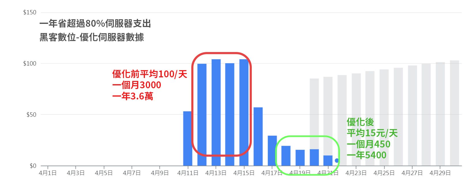 手動部署不會想像中這麼困難,但有一個問題是,要如何把伺服器的成本優化, 每個月90-100萬個事件請求,平均GCP會收費2500-3500元台幣。這一年下來會耗費額外成本近4萬元支出 ;歡迎找黑客數位,專業優化伺服器事件請求。降低伺服器費用超過8成。