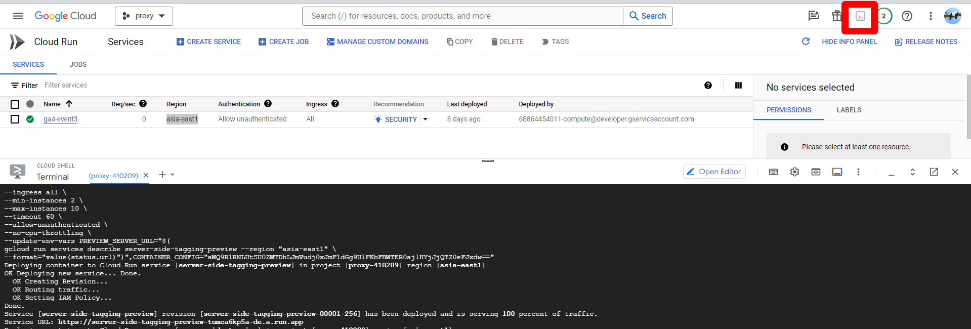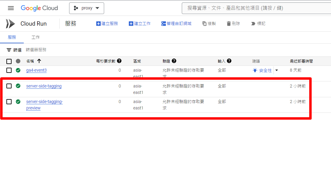 完成後,你會看到Cloud Run的服務多這兩個服務項目。點進去沒有Preview字尾的。你可以再次看到對應伺服器的URL。