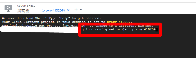 gcloud config set project {{project ID}} \\換上你的專案ID Project ID 直接填入你專案上的ID。並直接貼上至Cloud Shell。