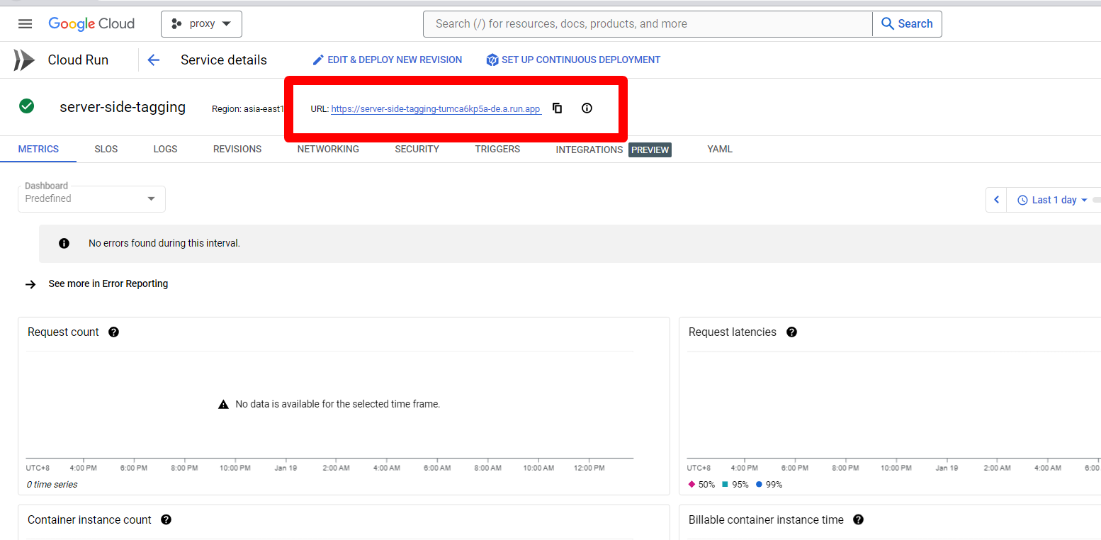 後續的配置GTM設定,把上面的URL貼進去GTM-SERVER容器裡面。詳細教學可以查看這一篇 「 GTM – ServerSide 伺服器追蹤教學 | 伺服器配置設定 」。