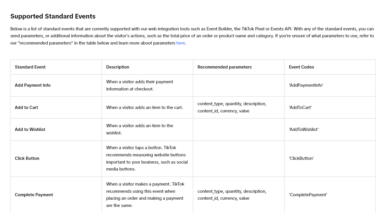 TikTok廣告追蹤事件參照 文件
