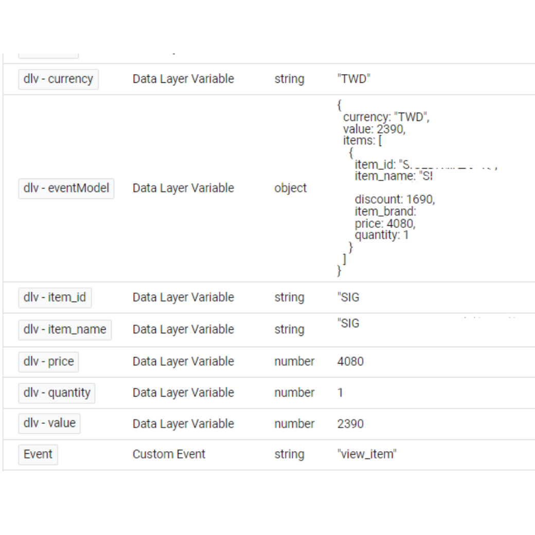 ecommerce.items.0.content_id 將其他你需要的變數,依序使用以上方法,抓去至GTM的變數裡面。這邊有很多關於程式語言的表示方法,如果不懂建議會直接看YT比較快。