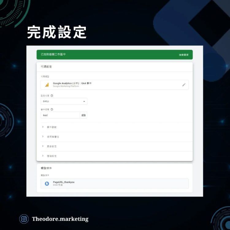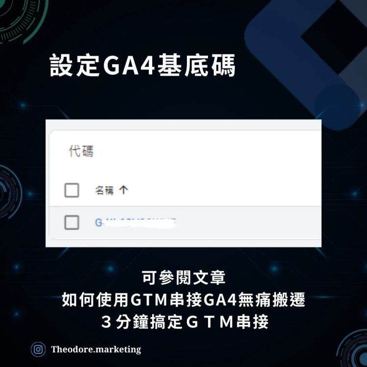 設定代碼,會回到關於步驟1【設定GA4基底碼】,將基底碼填入「設定代碼」中即可。