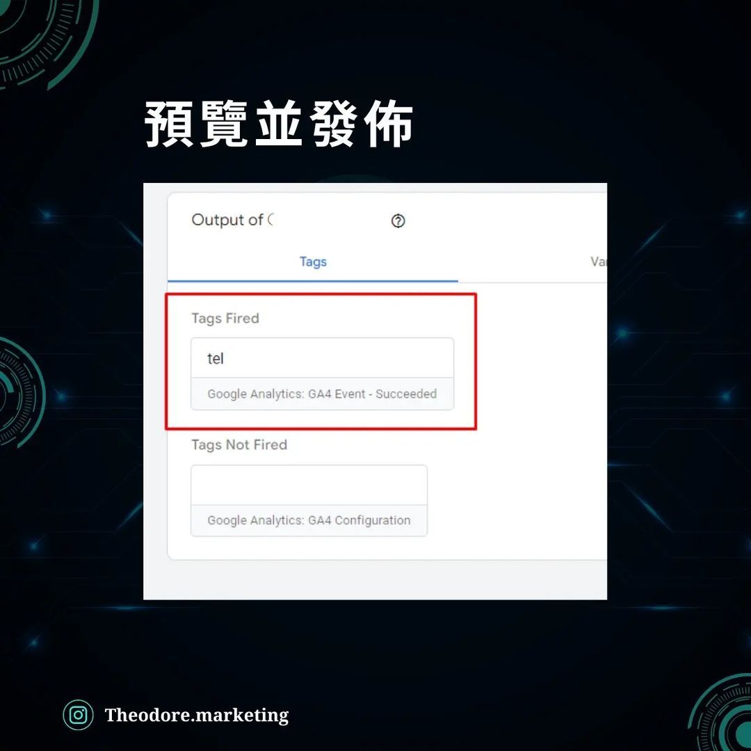 搭配範例圖參考。回到GTM,新增一個GA4事件代碼,名稱我取「tel」,另外參數可選擇要不要附帶。 事件名稱也可以取名為,公司內部看得懂的。我這邊只是以教學作為範例。