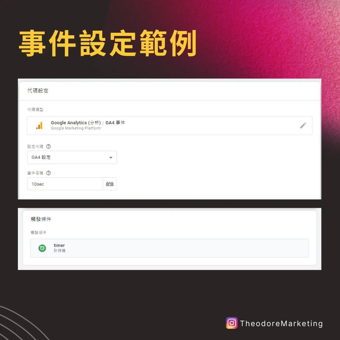 此設定可以抓出停留任一時間的使用者,依照指定時間觸發並傳送事件至GA4。除了網站研究分析外,還可以再打包成目標受眾,進行二次RT。