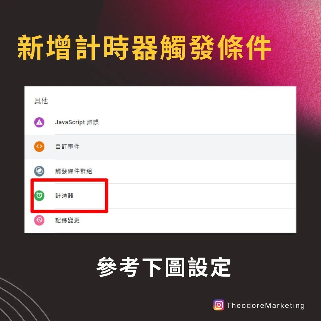 在GTM條件底下中,往下滑到最底,新增「計時器」。