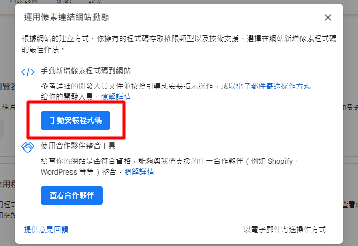 透過企業管理平台=>事件管理工具=>點選手動安裝程式碼。