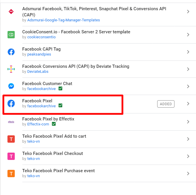 找到Facebook Pixel範本,並點選新增。