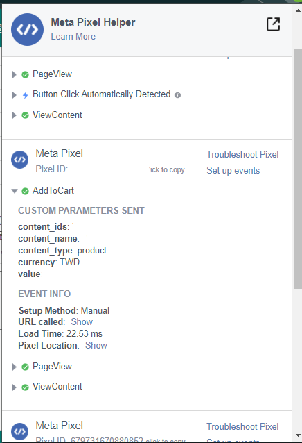 安裝Meta Pixel Helper可以查閱網站前端發出去的Pixel追蹤。