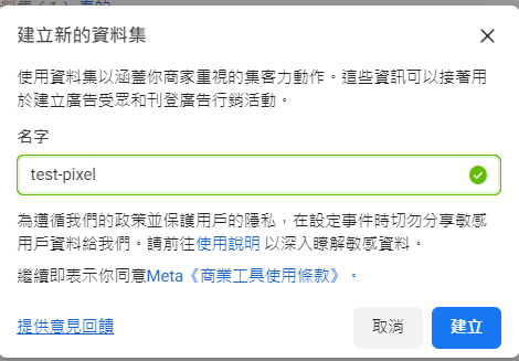 輸入你自己的pixel名稱,方便未來識別用。