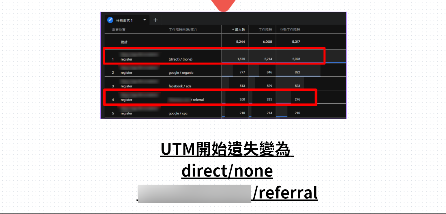 目前得出在LP時,GA4還是能正常認列utm來源媒介,因此錯誤絕對不是在這時候發生。