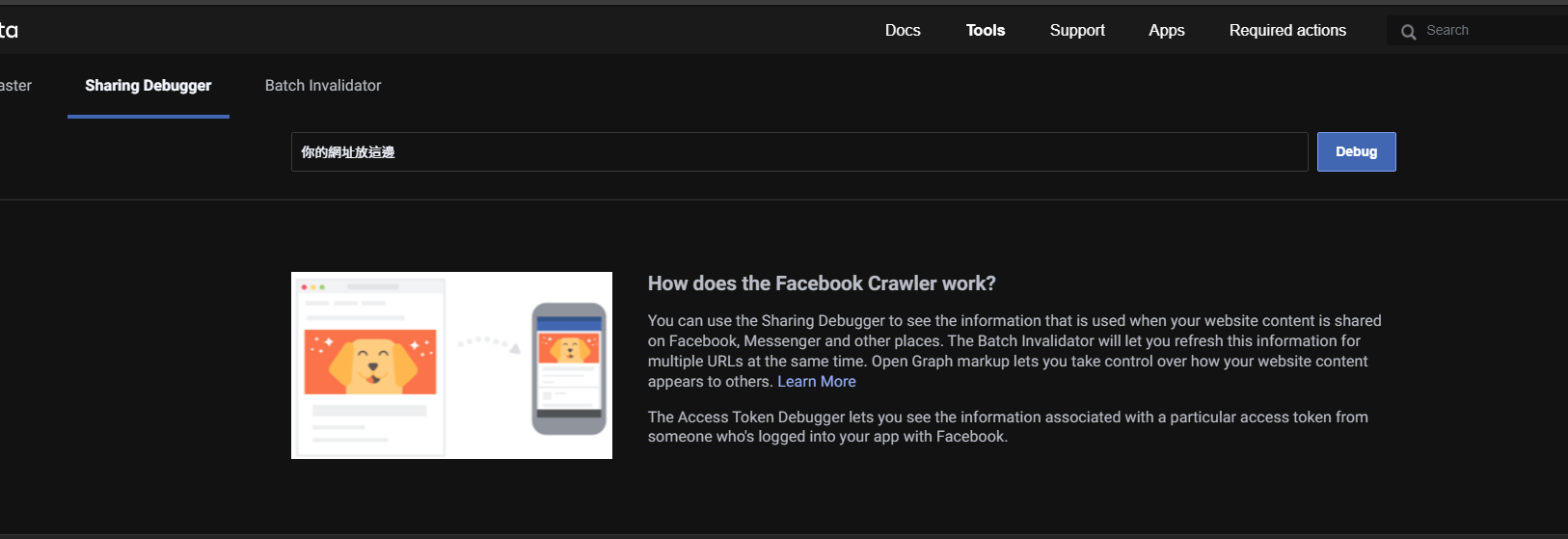 再次使用 Facebook Debber 工具 ,並貼上你的網址,讓臉書索引。