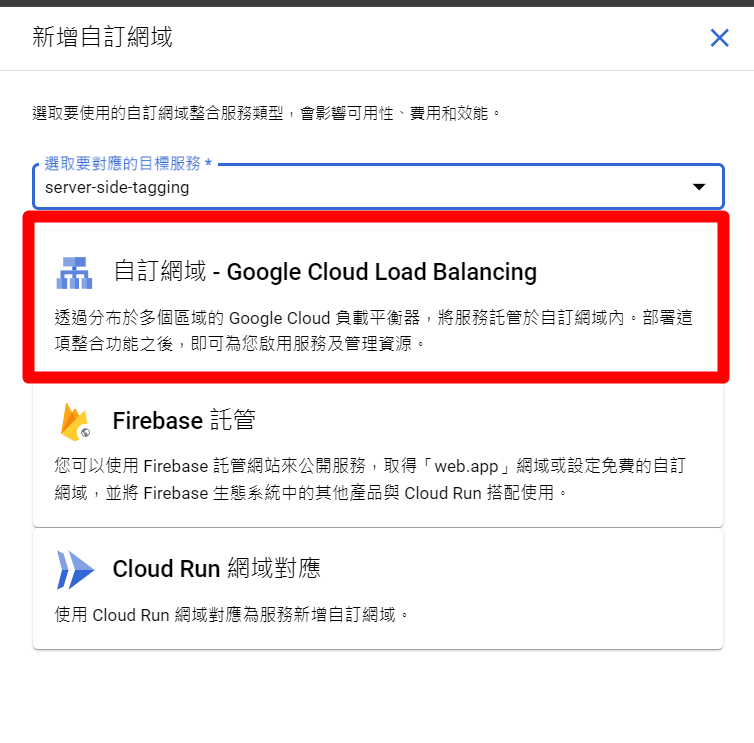 再點選第一個「自訂網域 - Goolge Cloud Load Balancing」。