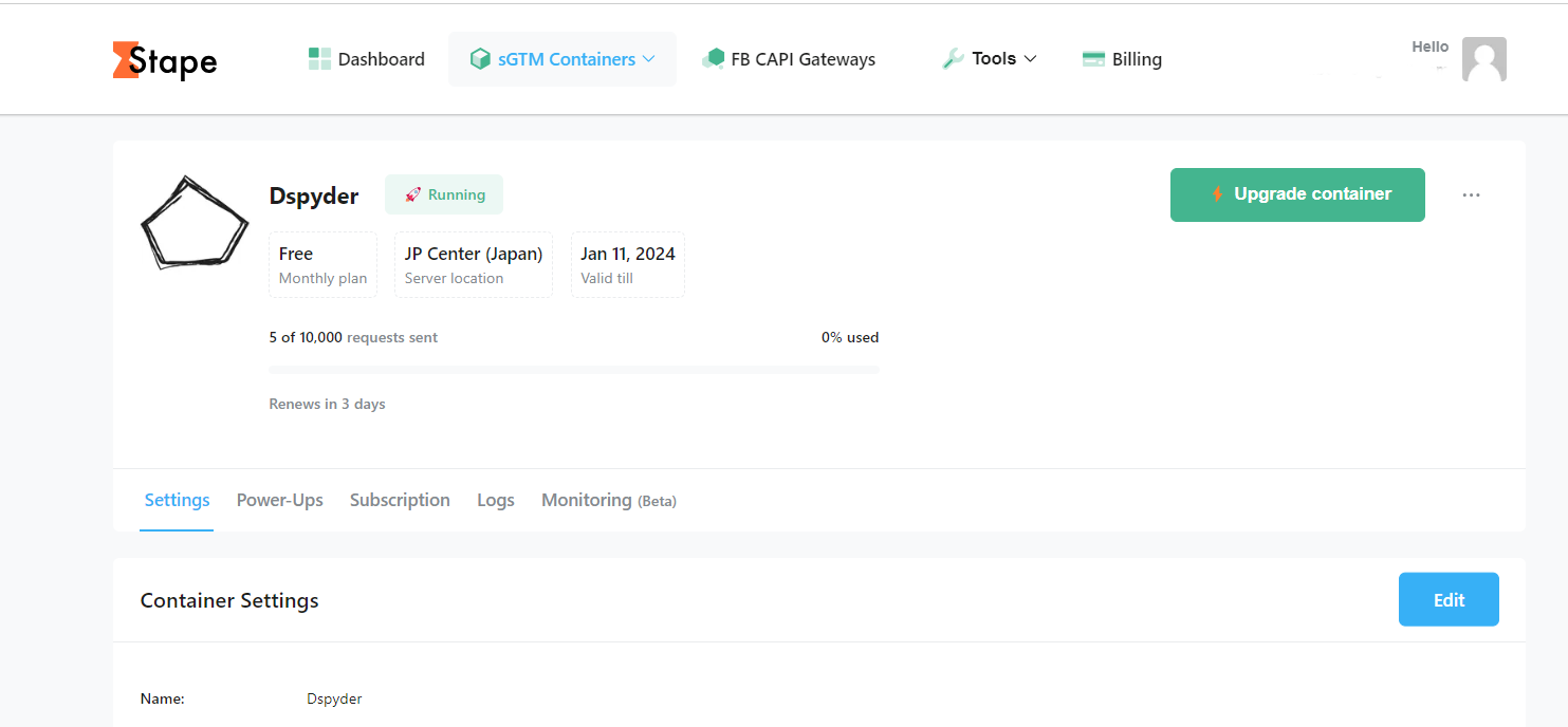 如果你是依照前面幾集設定STAPE伺服器,那你一樣先前往你的STAPE,點選sGTM Containers。