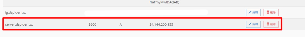 上圖為DNS紀錄,待會需要自行前往網域購買的地方,進行DNS 設定。如果不懂,可能要洽網域提供商,或者是私訊截圖給我看,我才有辦法協助你,因為每個人購買網域的地方都不同。