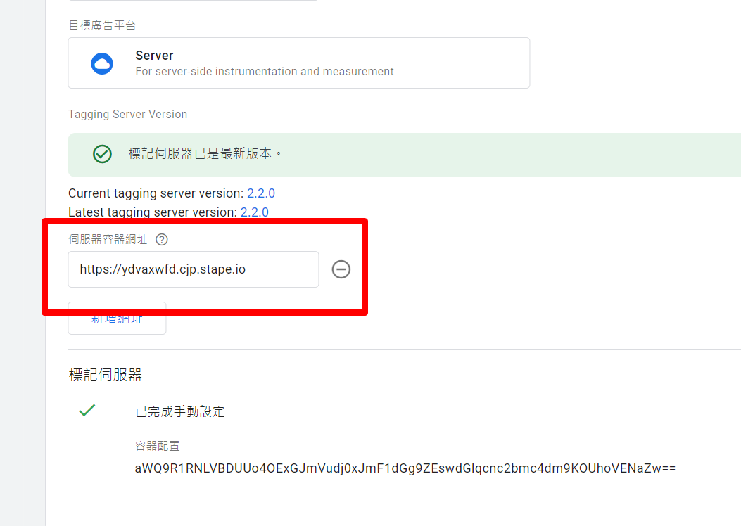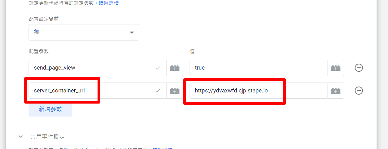 先至你的GTM-Server容器設定伺服器的網址,並放進來至上方圖片的位置,如果不清楚這個設定在哪,也可以回去看前一集的內容,我有提到這個在哪邊設定哦!