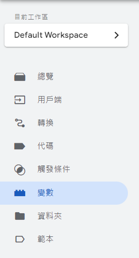 打開你的GTM - 伺服器容器,選擇左側選單的變數。