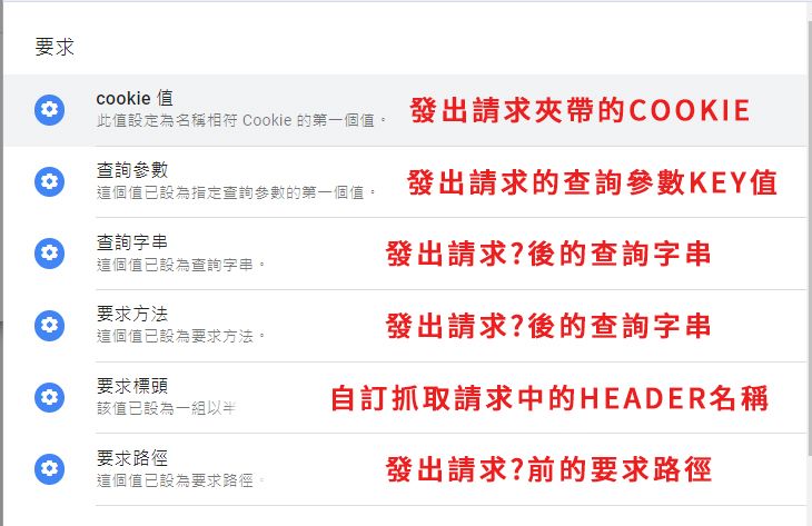 上面兩張圖要一起看,第一張圖的變數,會從第二張圖裡面的HTTP請求中撈取資料。