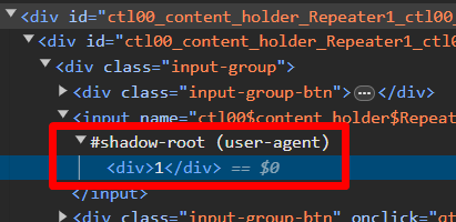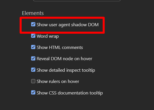 在開發人員工具中 (F12)點擊右上點的齒輪,並且找到下方圖片的 Show user agent shadow DOM 。