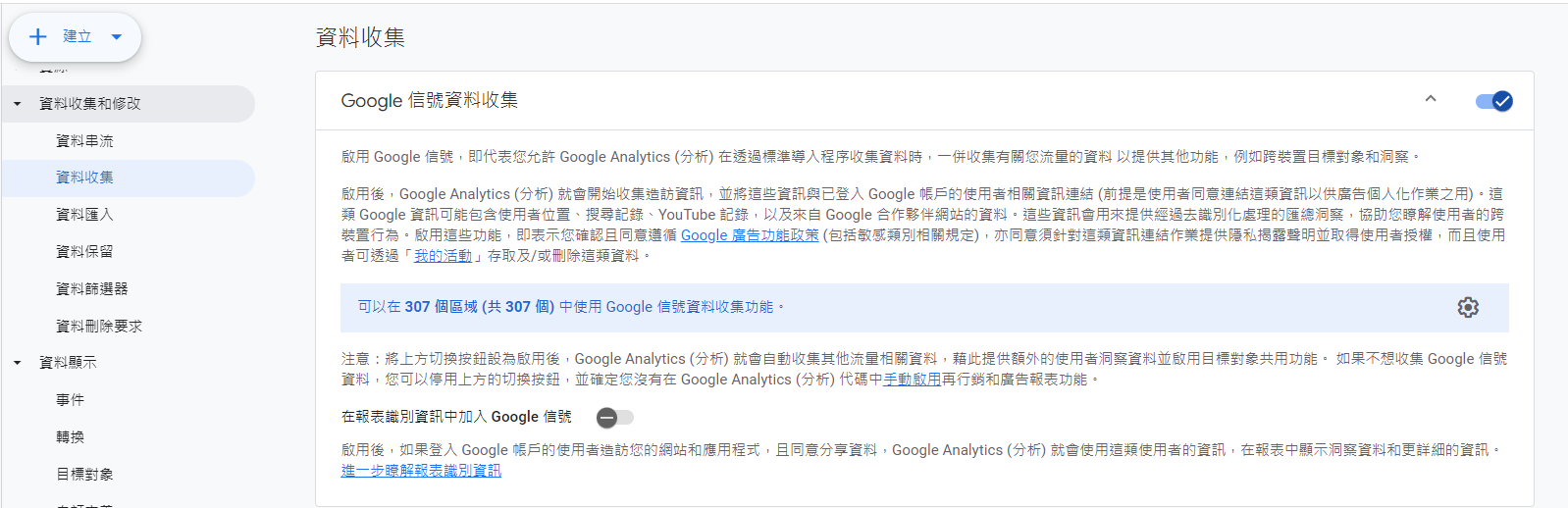 可以 參考GA4的基礎設定教學 ,來決定要關閉Google信號,或是調整報表識別資訊。